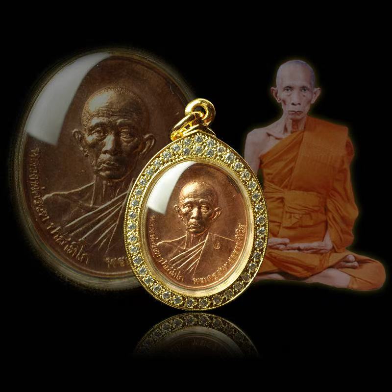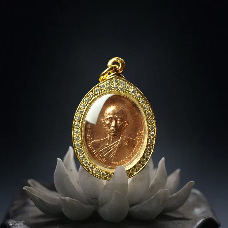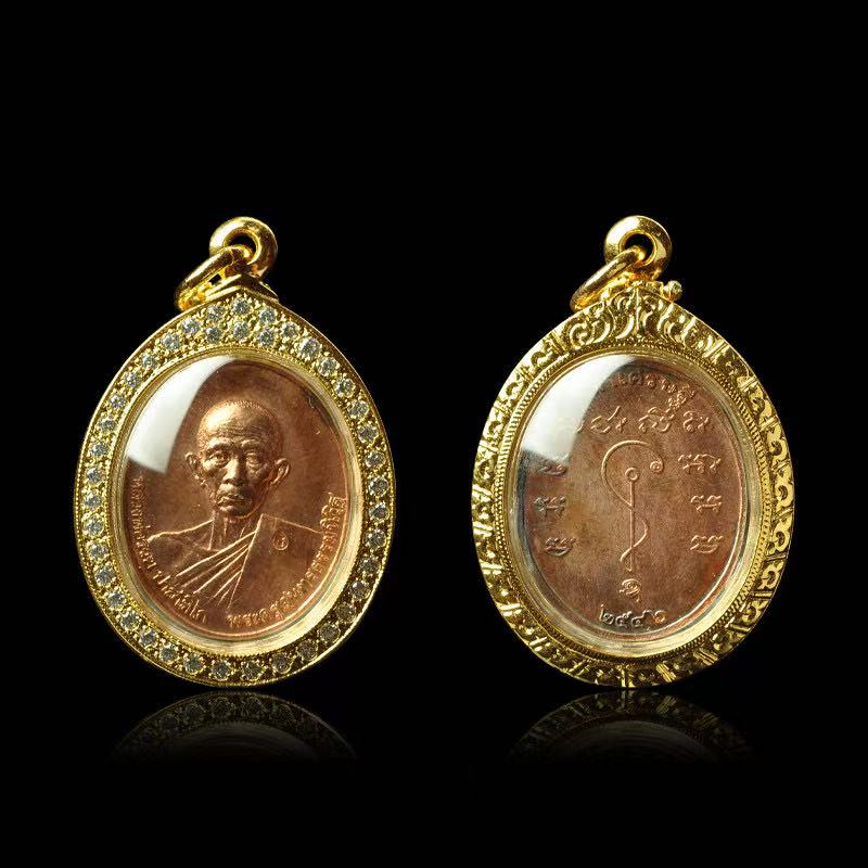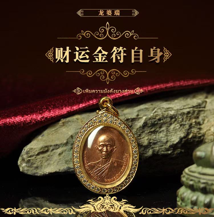 龙婆瑞师傅于泰历2546年督造加持的圣铜运财金符自身像。正面是师傅的自身像,背面是师傅独特的运财守财经文,距今20多年历史,此牌有助生意事业,正偏财运,避险等效果。 国民财神、富贵奇僧龙婆瑞是泰国当代十九大高僧之一,瑞这个字在泰文意思里是富有(有钱)的意思,师父在于招财法门的功力深厚,其实大师除了招财法门相灵当验之外还,可快速提升运势,功效及灵力极高!
