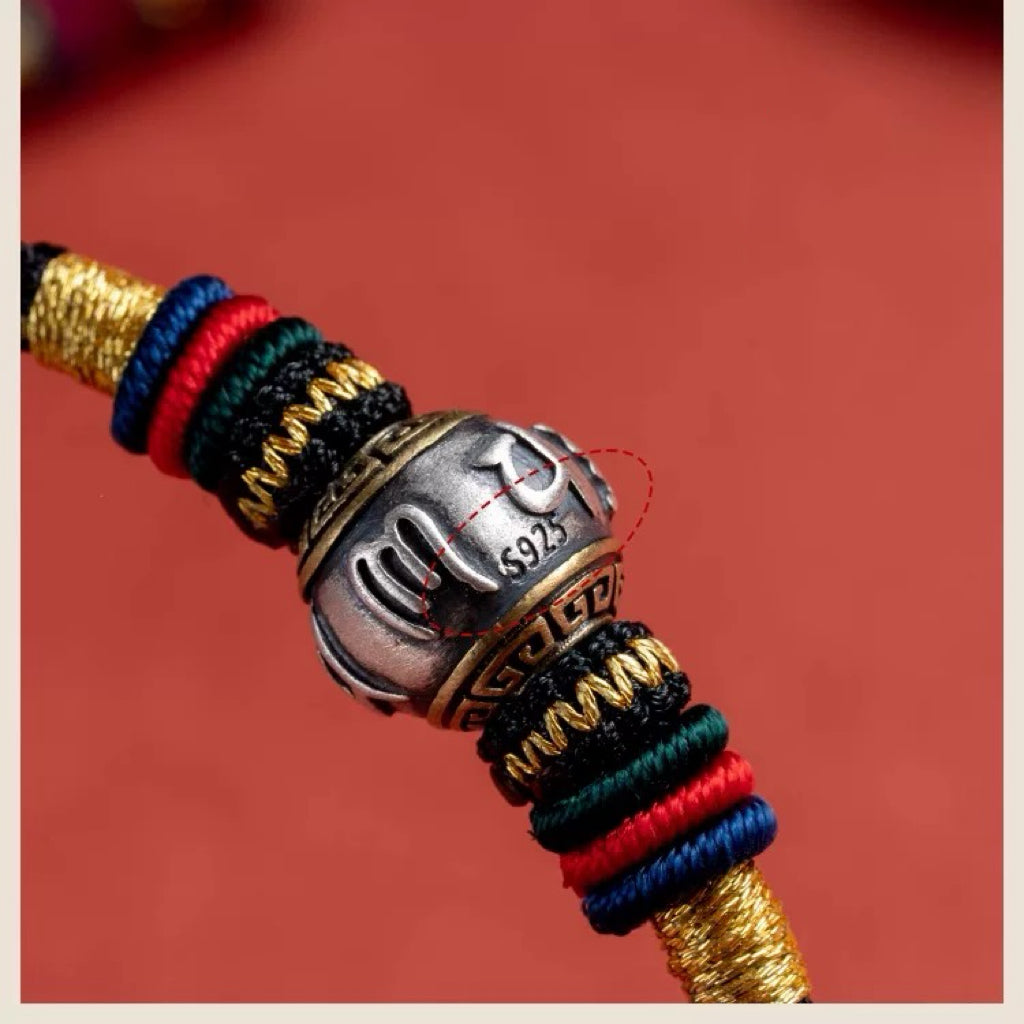 This bracelet is a talisman for those seeking inner peace and energy balance in 2026, guiding you to navigate the year serenely through positive energy and ancient wisdom. It integrates powerful symbolic elements to address challenges the traditional "Tai Sui" year may bring. At its core is a metal bead engraved with the ancient Six-Syllable Mantra—fundamental sound vibrations of compassion and wisdom, like a miniature energy purifier and protective shield.