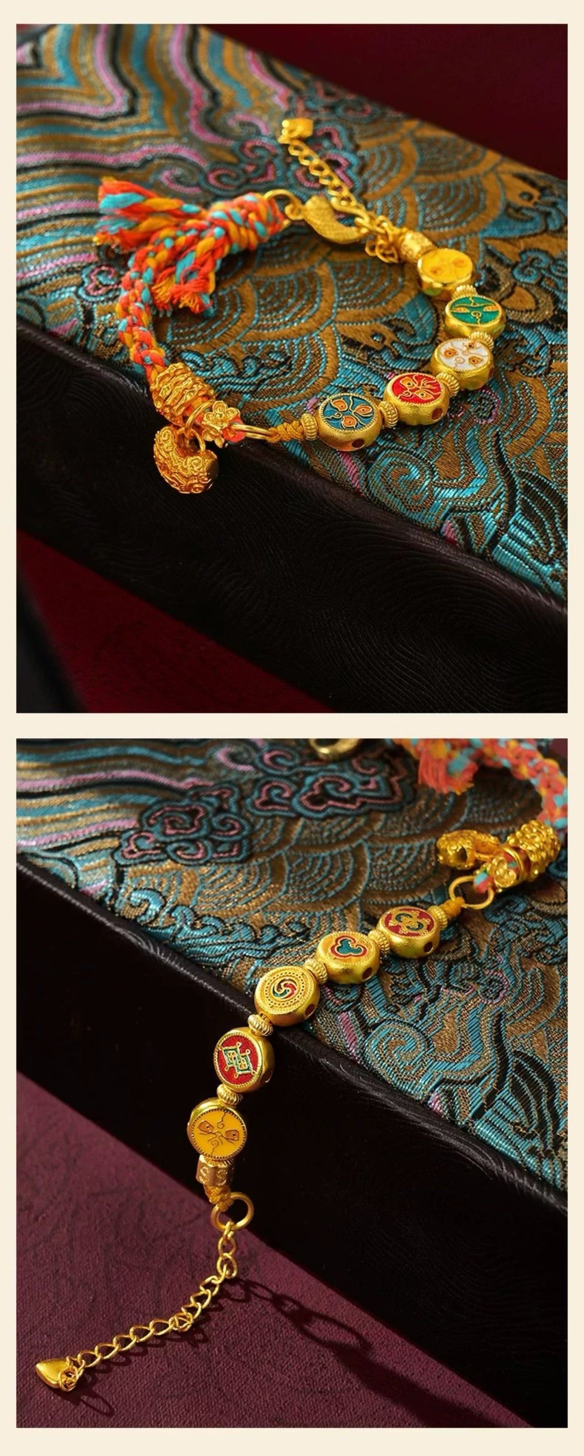 This bracelet is a comprehensive protection and prosperity talisman for 2026, bringing peace and opportunities through all-encompassing symbolic blessings. It skillfully integrates powerful cultural symbols into a multi-layered energy system. At its core are five brass Five Wealth Gods charms crafted with traditional techniques, symbolizing wealth and resources converging from all directions. The safety lock secures your stability, while the leaping koi represents transforming adversity into good fortune.