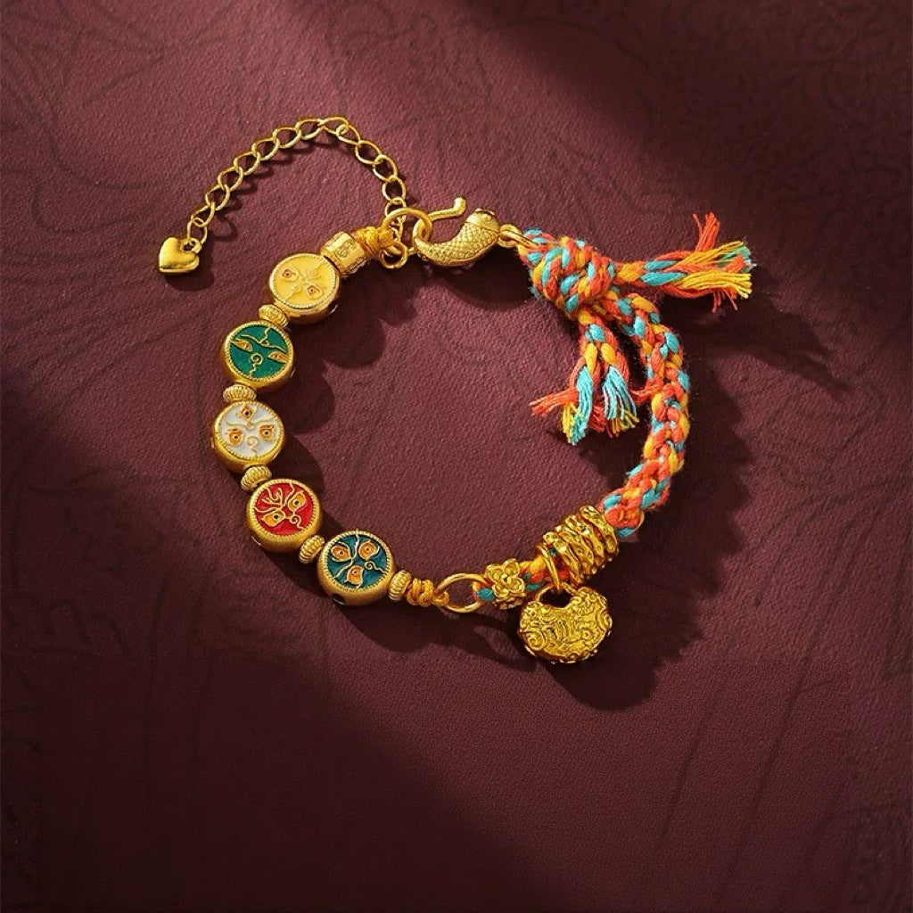 All elements are strung on colorful hand-woven hemp cord—red for protection, blue for peace, gold for abundance. Regardless of your zodiac sign, this bracelet helps you buffer potential changes in 2026, attract positive energy, and provide symbolic support for personal stability and prosperity.