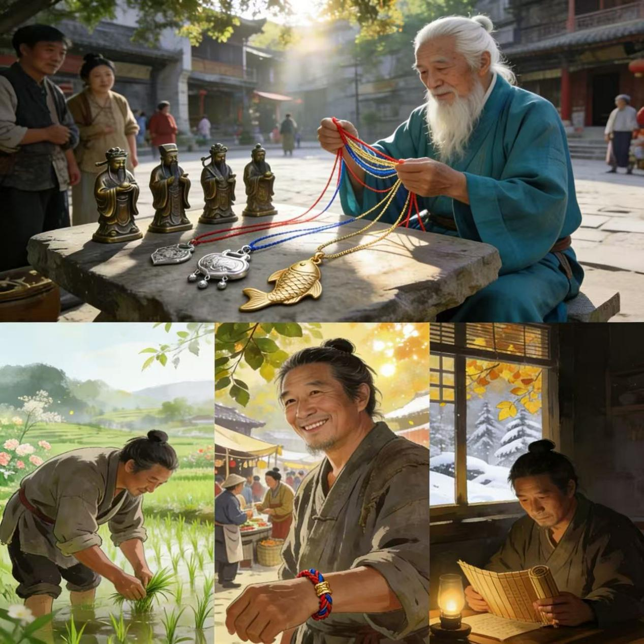 In an ancient town, a wise sage taught: "True peace and abundance come from multi-faceted protection, inner calm, and the courage to seize opportunities."