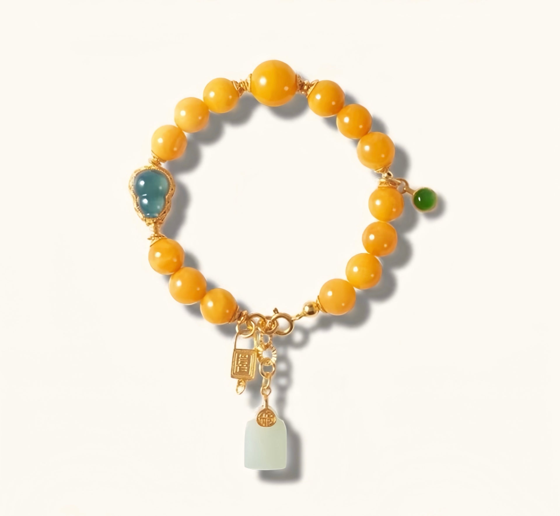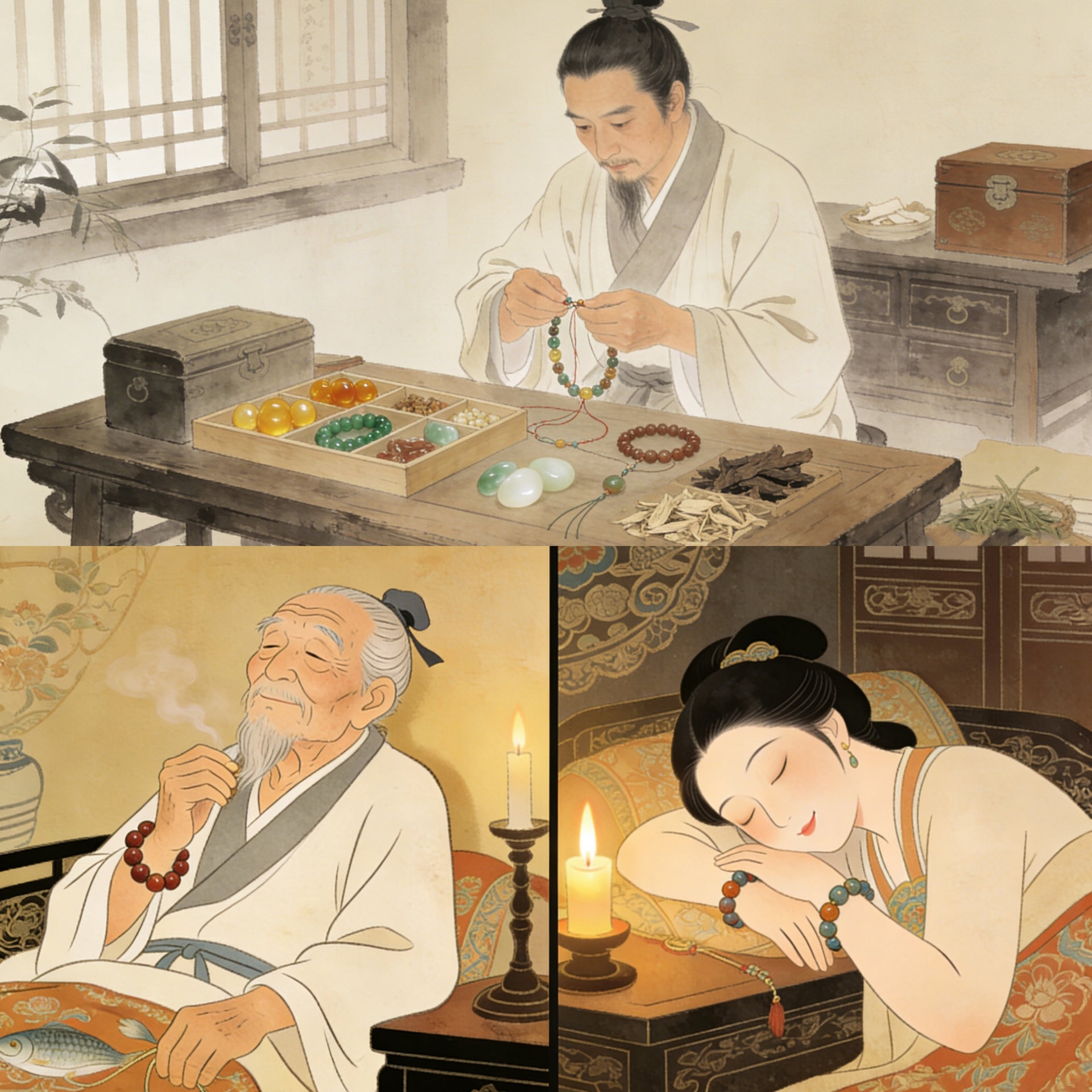 In ancient times, a wandering physician arrived in the Jiangnan region and noticed the locals often suffered from summer restlessness and winter weakness. He crafted a bracelet using amber (to warm meridians and promote flow), jadeite (to calm the heart and reduce heat), and Hetian jade (to nourish lungs and strengthen the spleen), gifting it to the ailing. An elderly fisherman with a lingering cough gradually breathed easier upon wearing it, and an insomniac embroiderer began to sleep soundly through the night. The physician explained, "Health is like a tripod—it cannot stand firm if one leg is missing."