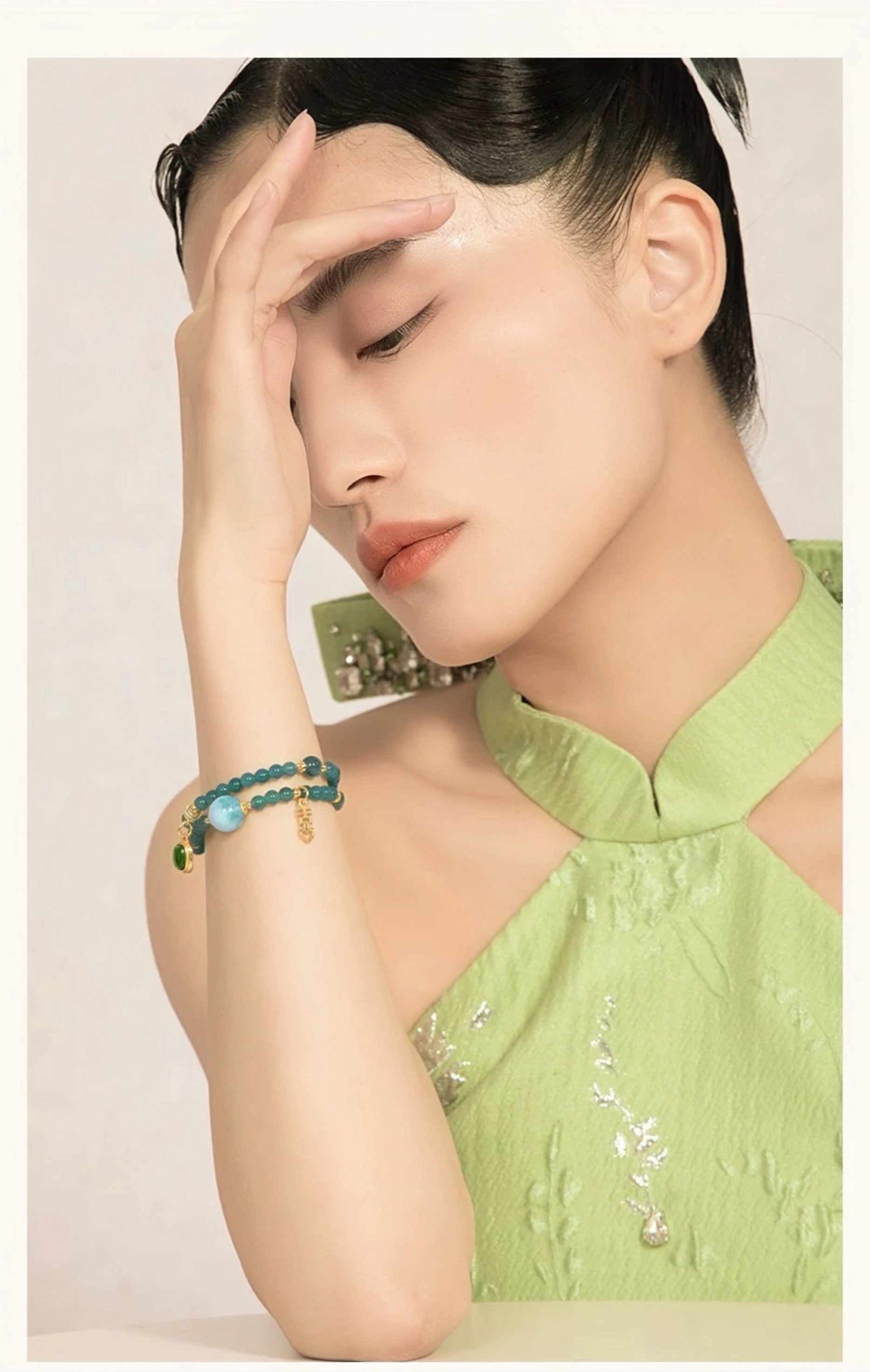 Returning home, a golden butterfly touched his coat button and became a clasp. He combined these elements into a bracelet. Wearing it, he grew calm and whole. When he had learned to love himself, he naturally met a woman whose soul resonated with his at an art exhibition. Their connection was instant and deep. This story inspires the bracelet's design: true love begins within, and wholeness attracts resonance.