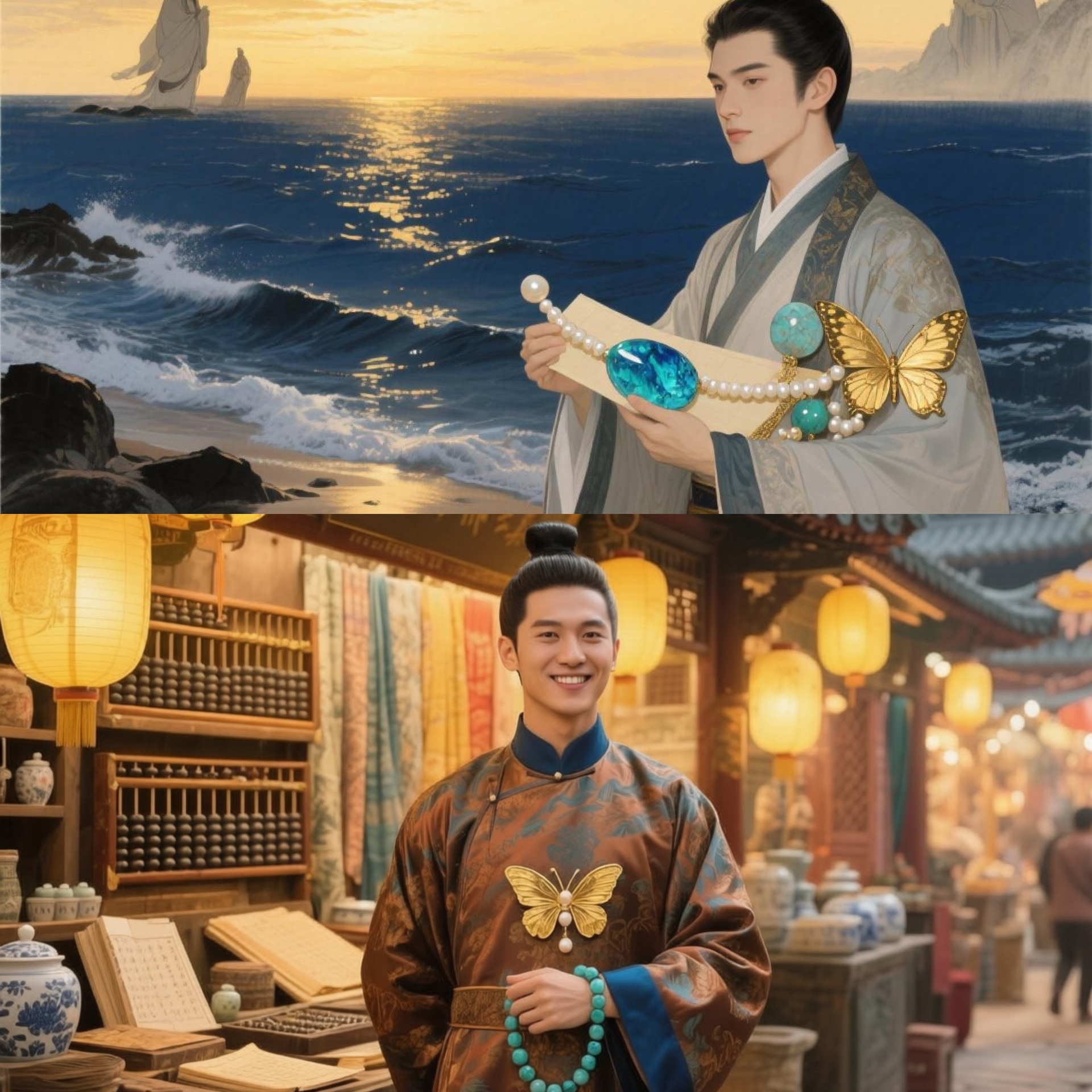 Legend tells of a "Heart Lake" with spiritual blue jadeite that mirrors true feelings, and a Caribbean shore where Larimar—a stone said to soothe the heart—washes ashore. A young traveler, yearning for love but guarded by past wounds, sought both. He received the jadeite and found inner peace, then obtained Larimar and felt his heart open.