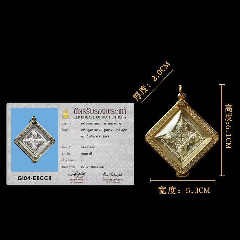 The only contemporary high monk capable of communicating with the Four-Faced God, Master Luang Phor Chan Nam, supervised and blessed this pure silver version of the Four-Faced God in 2567 BE. It follows the classic design of the first edition by Ajarn Xing, and was further blessed with hand-engraved sacred symbols by Master Ajarn Diao, who also belongs to the orthodox lineage of the Four-Faced God tradition, at his shop in Thailand—extremely rare. The Four-Faced God is the most efficacious deity in Southeast Asia, representing career, wealth, family, and health, attending to all aspects of life and answering all prayers.