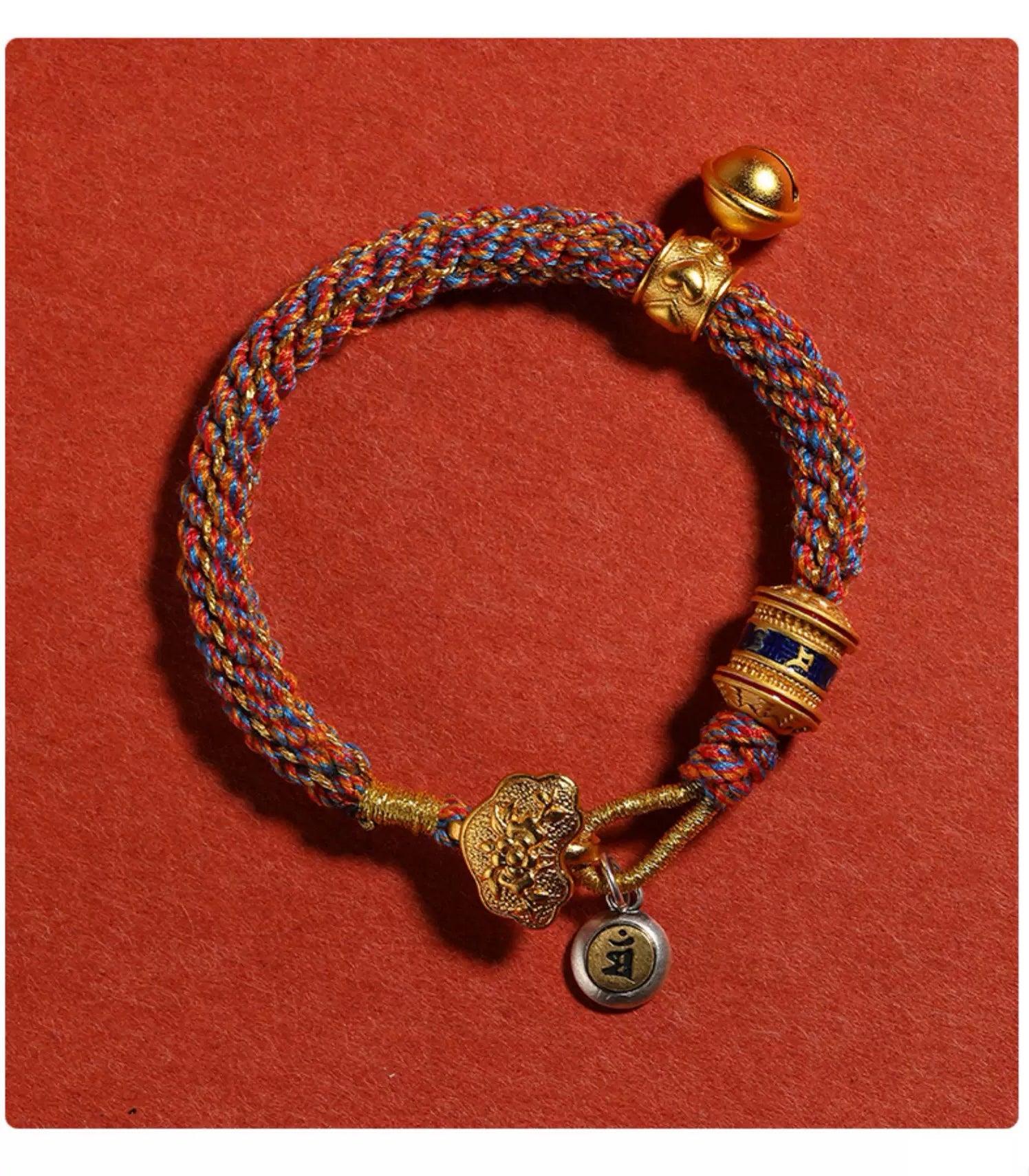 Strung on a tricolor woven cord—red for passion and protection, blue for calm and wisdom, gold for success and light—this bracelet is more than an exquisite accessory. The subtle bell chime serves as a positive daily reminder, making it your unique way to express yourself, attract positive energy, and enjoy the charm of traditional aesthetics.