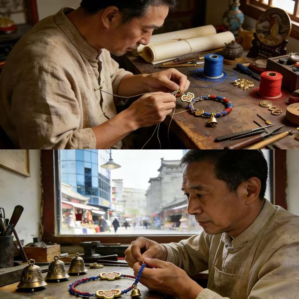 IOn a road connecting ancient markets to modern streets, a craftsman sought to create a token carrying blessings while showcasing the wearer's personality. "True protection should be vibrant, melodious, and completely belong to the wearer," he thought. He wove resilient threads in tranquil blue, passionate red, and radiant gold, designed a ruyi clasp for daily fulfillment, added a chiming bell for positive vibrations, created a cloisonné "fortune barrel" spinning good fortune, and left the central position for the wearer's zodiac choice.