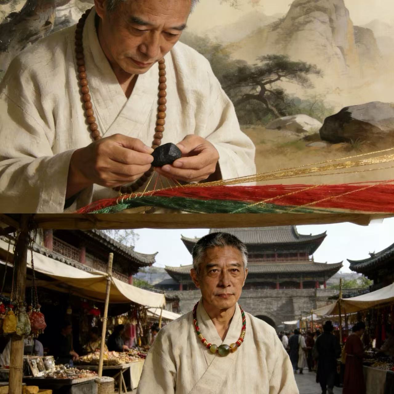 In ancient wisdom, true protection comes from inner peace and harmony with natural energy—for all who open their hearts. Wise practitioners found smooth stones symbolizing earth's heart and wove resilient threads—red for protection, green for growth, gold for light—binding the stone with ancient blessing knots.